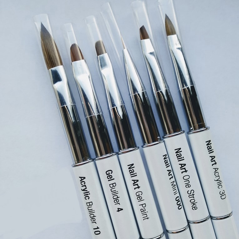 Pinceau Acrylic Builder 10 à poils Kolinsky (naturels). Indiqué pour les constructions d'ongles en acrylique. Capuchon protecteur en métal inclus. Possède un design élégant et une grande précision et stabilité.