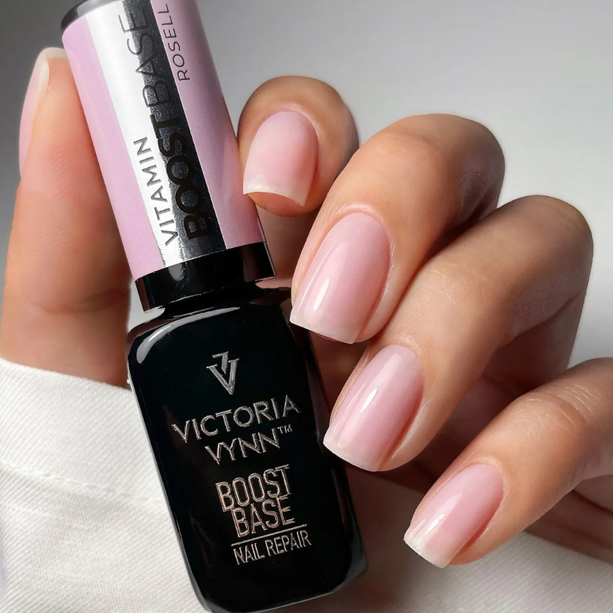 1Boost Base - une base hybride enrichie en vitamines qui renforce les ongles naturels, contenant des fibres de polyamide exceptionnellement durables (Fiber Glass) qui renforcent, scellent et uniformisent la surface de la plaque à ongles. Enrichie en calcium et en vitamines E et B5, a un impact positif sur la santé des ongles. Grâce aux microfibres de verre, les ongles deviennent souples et résistants à la casse et à la fissuration. Cette base flexible, une fois durcie, est également utilisée comme rub-in pour divers systèmes de construction.